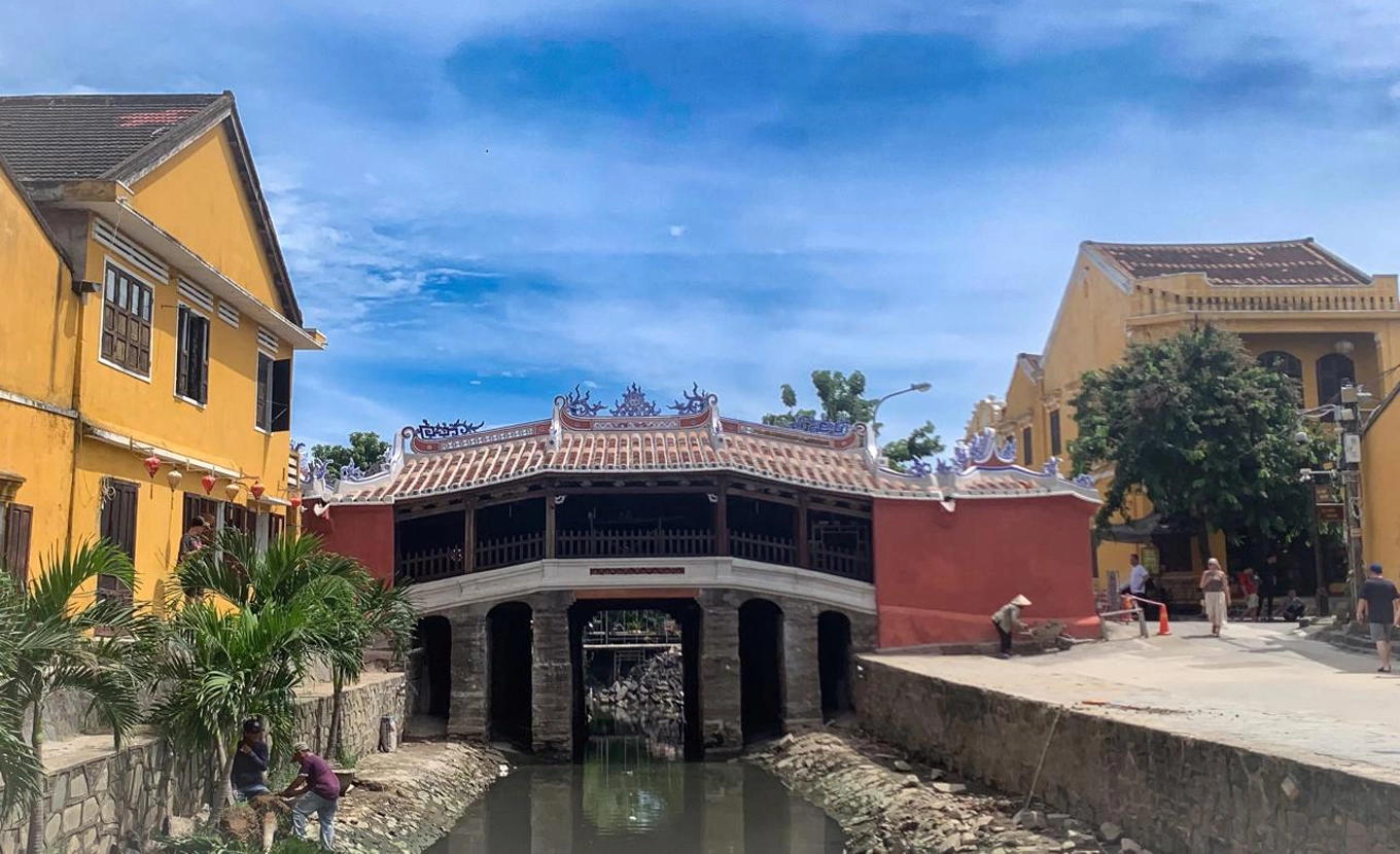 o símbolo da cidade Hoi An - o Chua Cau ou a Ponte Coberta Japonesa, construído no século XVII para permitir que o bairro japonês fosse acessível a partir dos bairros chineses. O estilo original da ponte tem sido cuidadosamente preservado nos últimos 400 anos.